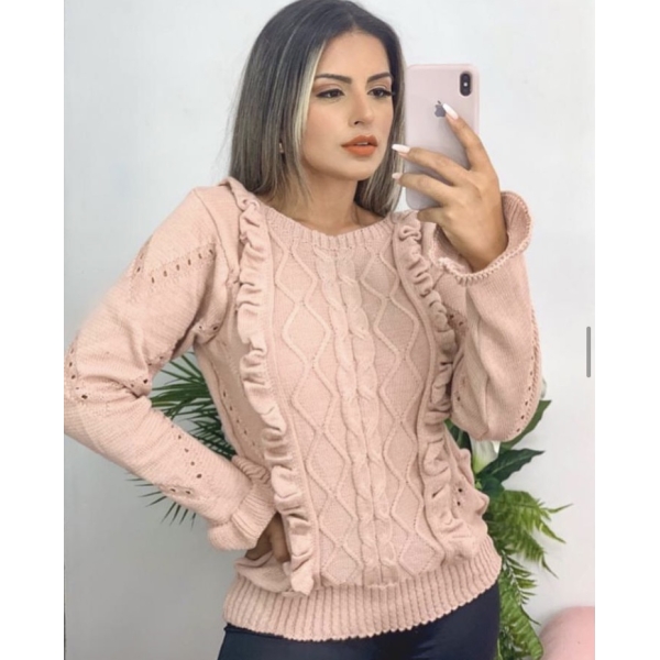 Confeccionada em tricot, possui manga flare e detalhe frontal em babado, deixando sua peça perfeita.