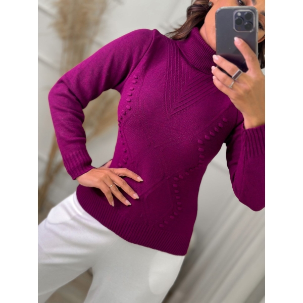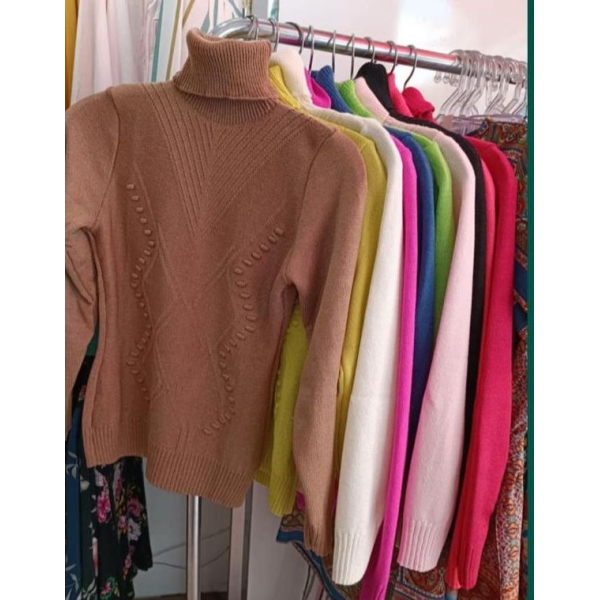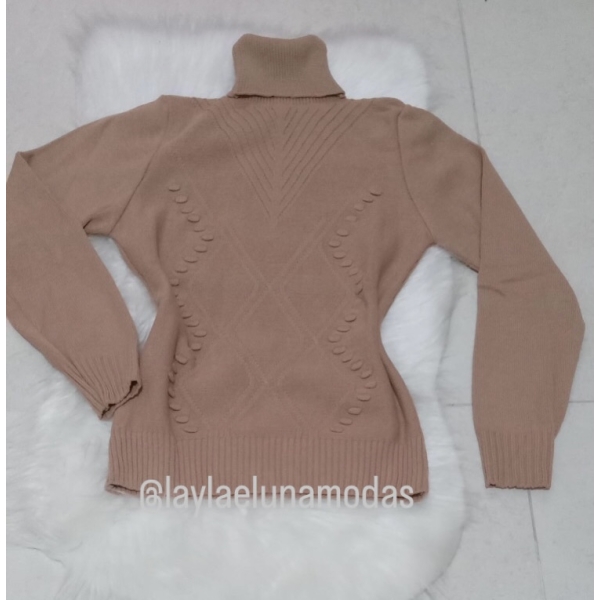 Peça em tricot de alta qualidade, possui gola alta e detalhes em pompom.